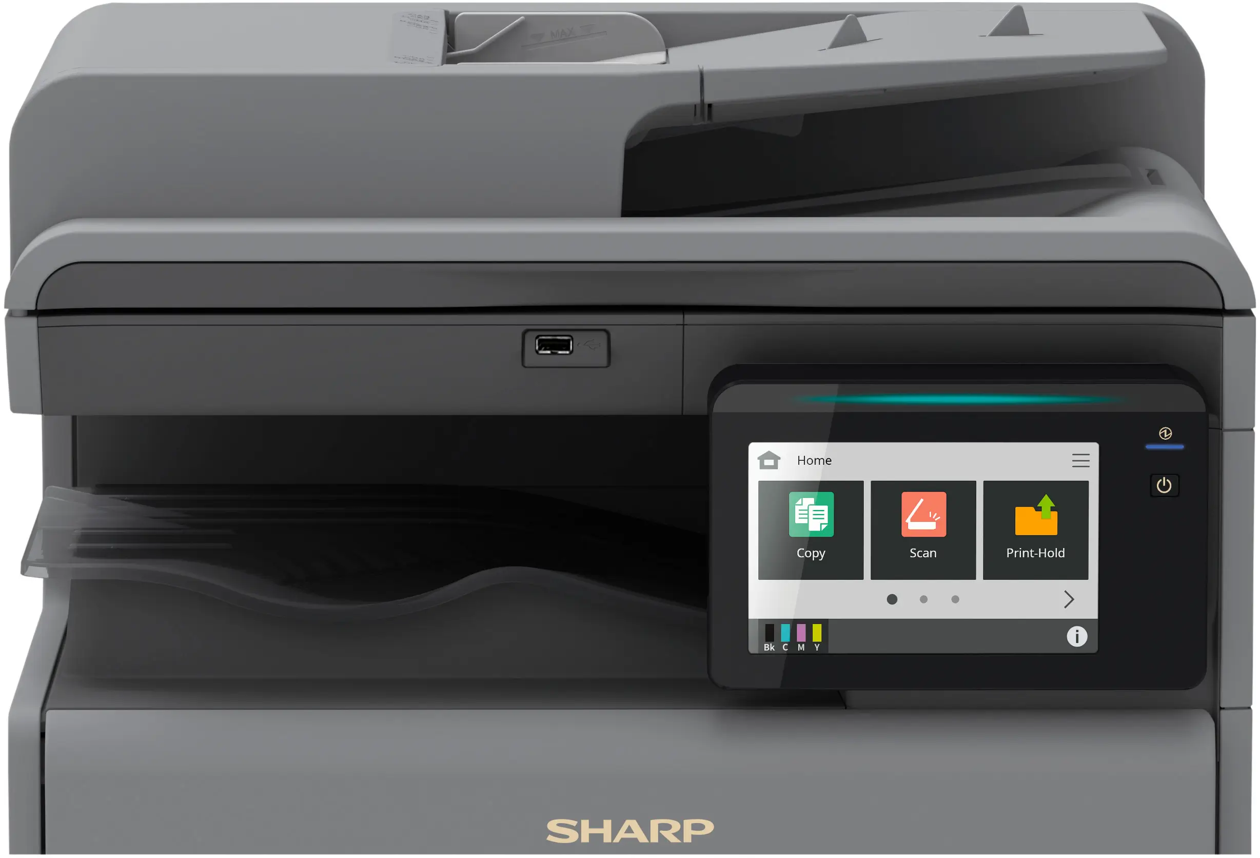 The SHARP BP-22C Series Color Multifunction Printer combines a compact footprint, sleek design, and advanced functionality to meet the needs of today’s dynamic workplaces. Its 7-inch intuitive touch panel offers effortless access to essential features, while tools like Rotate Sort and Duplex printing organize multi-page outputs efficiently, segregating sets horizontally and vertically.
